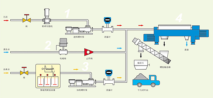 控制固體停留時間:當(dāng)進(jìn)入離心機的污泥量和泥質(zhì)發(fā)生變化時,為始終保持最佳的脫水效果,連續(xù)控制高干度離心機轉(zhuǎn)鼓內(nèi)的固體總量。這種控制通過螺旋推進(jìn)器的驅(qū)動系統(tǒng)來完成。螺旋推進(jìn)器驅(qū)動系統(tǒng)可以實時檢測轉(zhuǎn)鼓內(nèi)的固體總量水平并對差速進(jìn)行相應(yīng)的自動調(diào)節(jié)、推料功率自動補償。